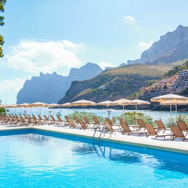 Found in sleepy Cala San Vicente, Grupotel Molins has a hard-to-beat location right by a sandy cove and boasts a striking mountain backdrop. The amazing views can be enjoyed throughout most of the pub.