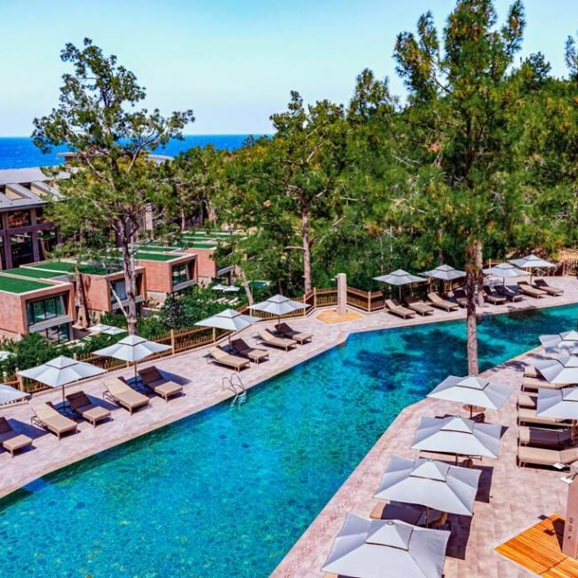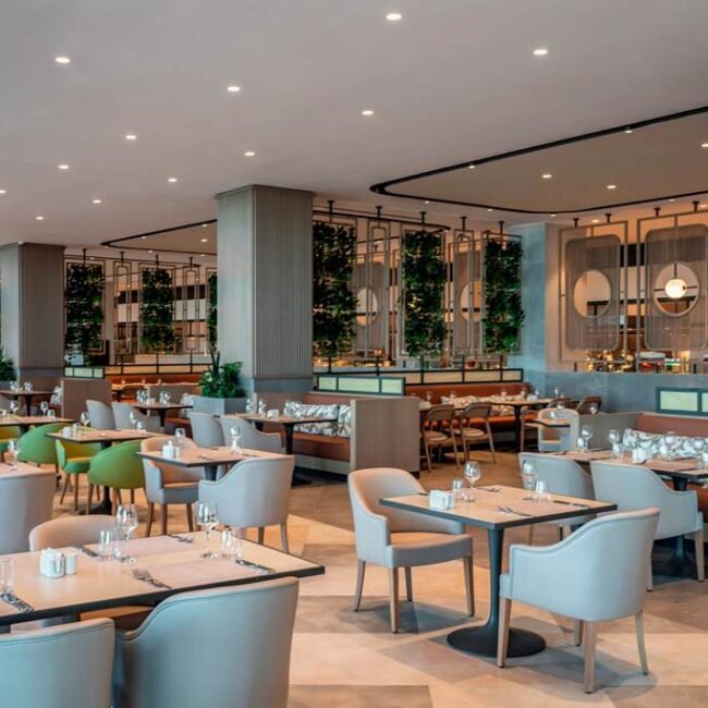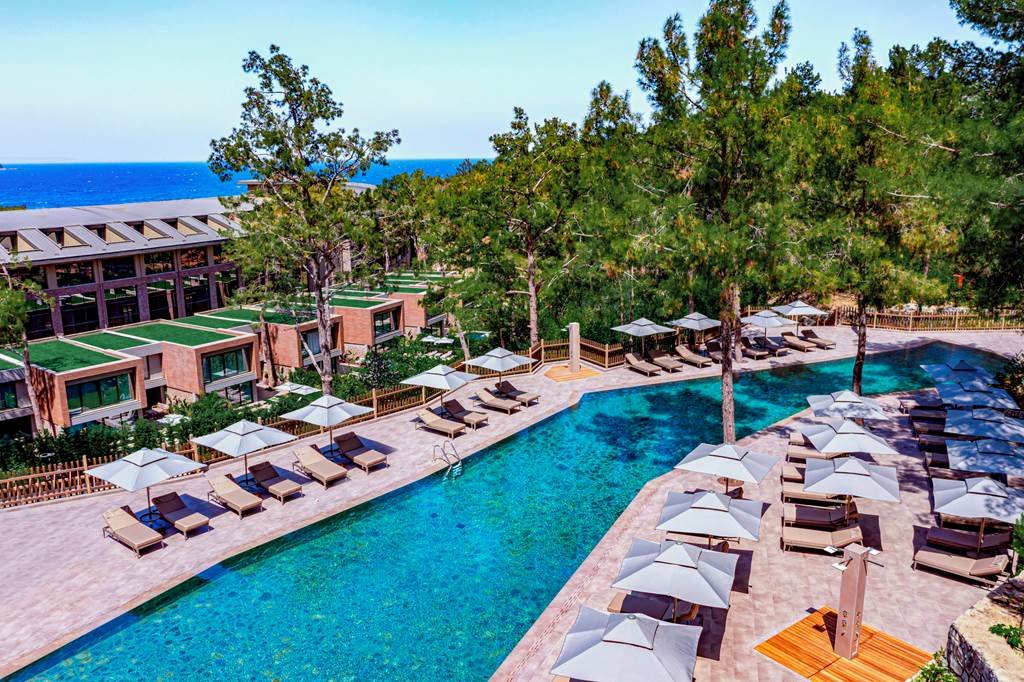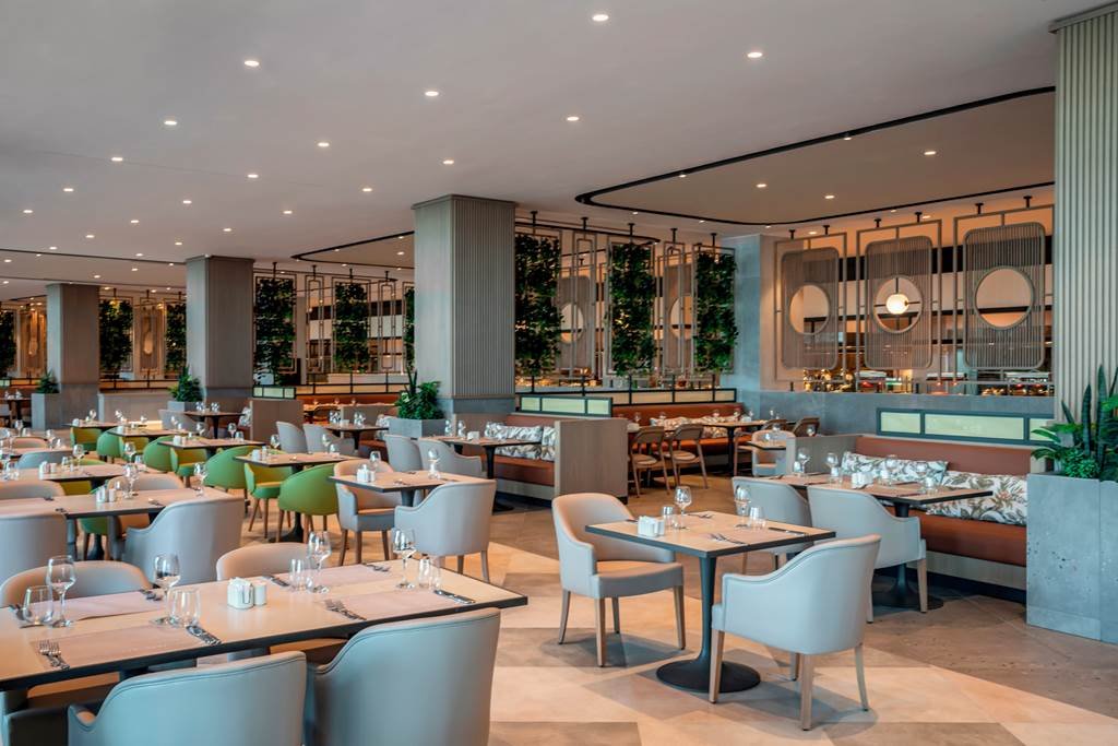 There’s an emphasis on every moment here being uniquely divine. From the curved architectural design to the indoor spaces studded with draped plants, it’s exquisite in the looks department. The crisp,